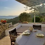 Willa Romantic Sunset Cycladic House In Sotires dysponuje tarasem z widokiem na morze, 15 min jazdy od lotniska Paros National.